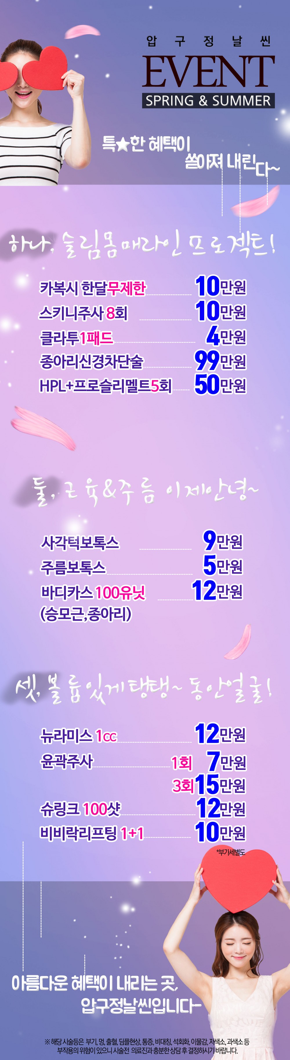 봄맞이&여름대비 소식! 압구정날씬 봄여름EVENT 페이지 정보 작성자 압구정날씬의원 작성일17-05-12 13:57 조회21,673회 댓글0건 관련링크 이전글 다음글 목록 본문 압구정날씬의 Spring Event 봄맞이&여름대비 소식을 만나보세요 댓글목록 등록된 댓글이 없습니다. 이전글 다음글 목록